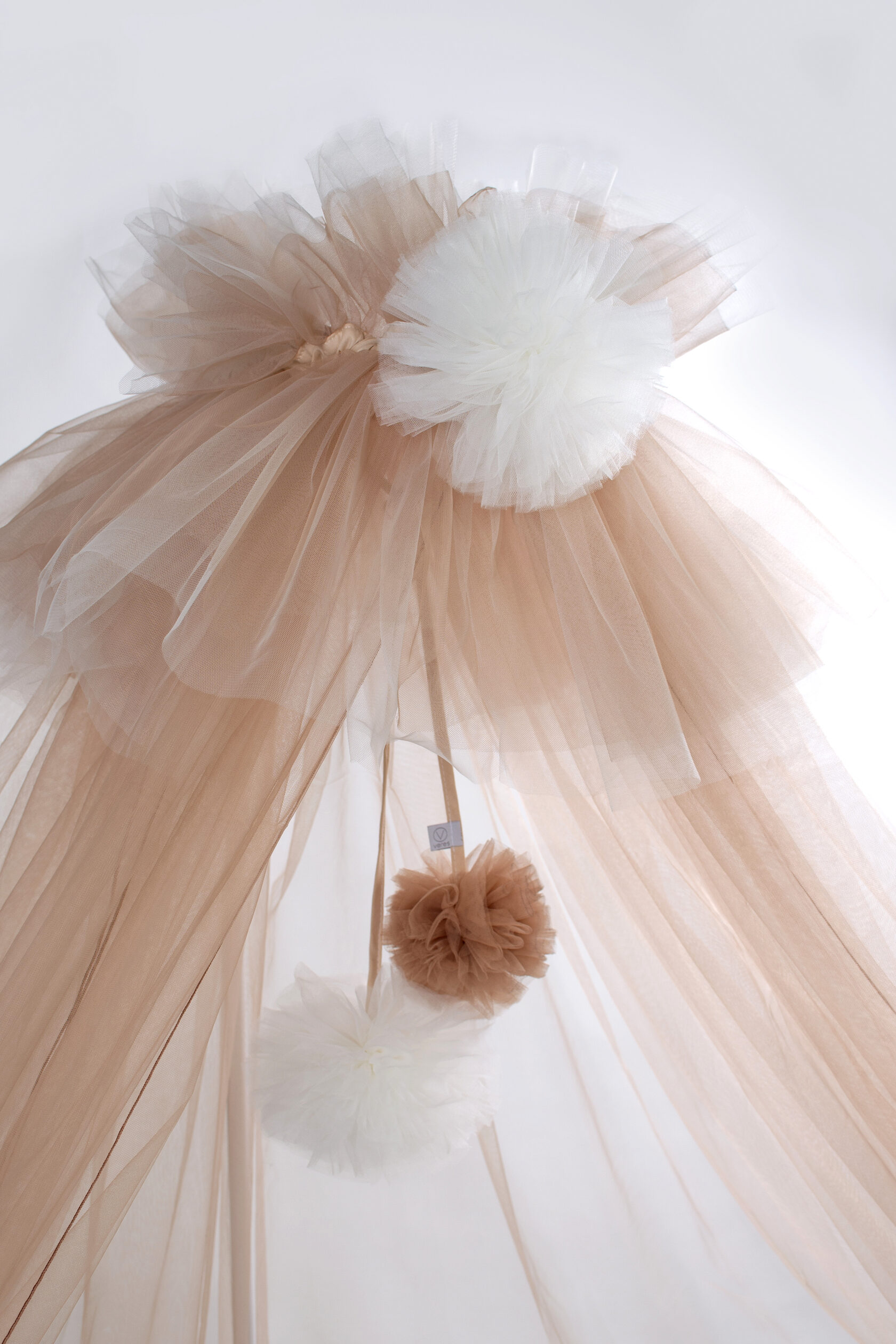Вибирайте балдахіни, виготовлені з легких натуральних тканин, які добре пропускають повітря і переносять прання: ситцю, органзи, тюлю, натурального шовку, фатину, батисту та ін.