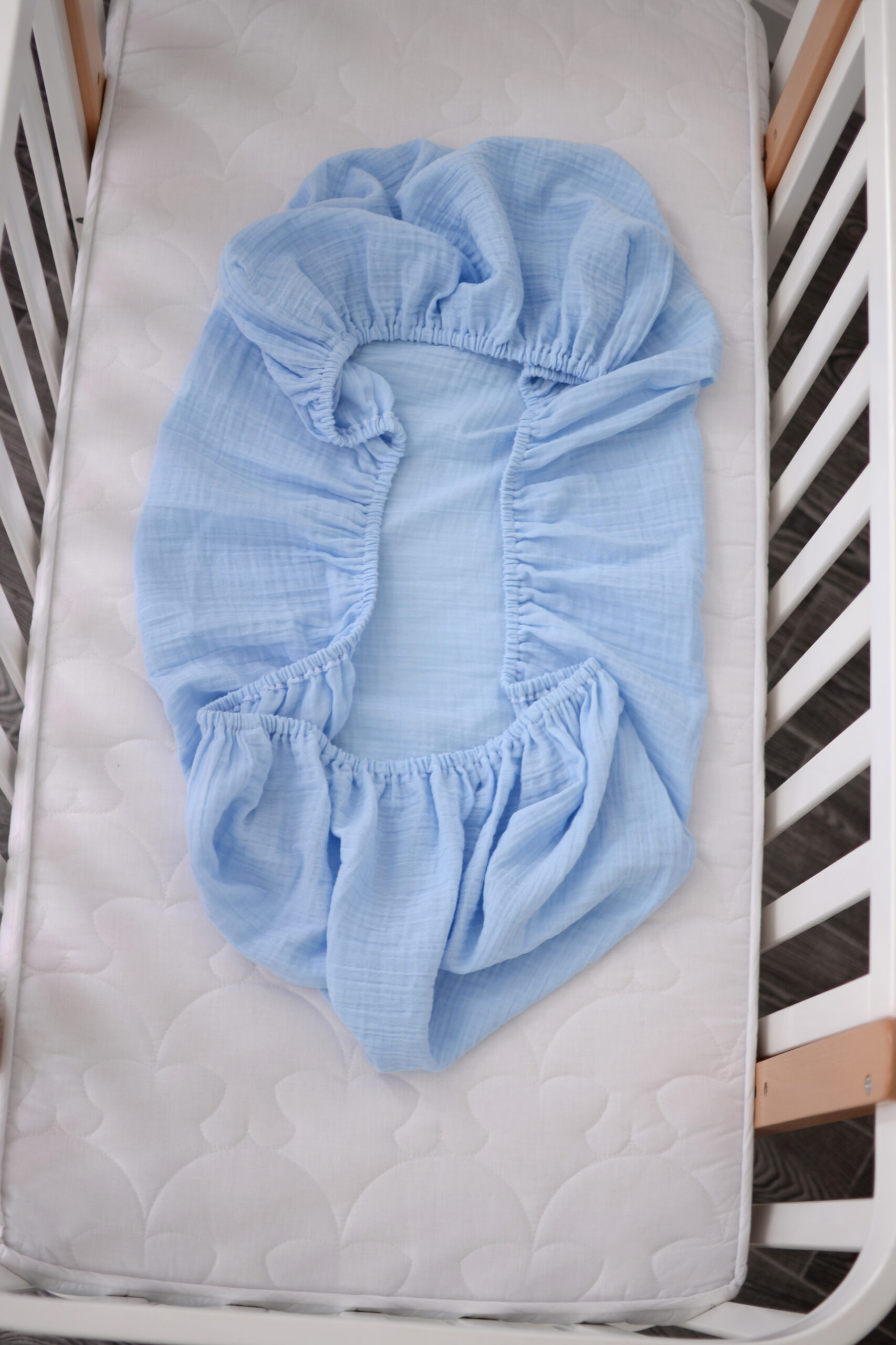 Простирадло на резинці для матрацу муслін120*60 блакитний, шт