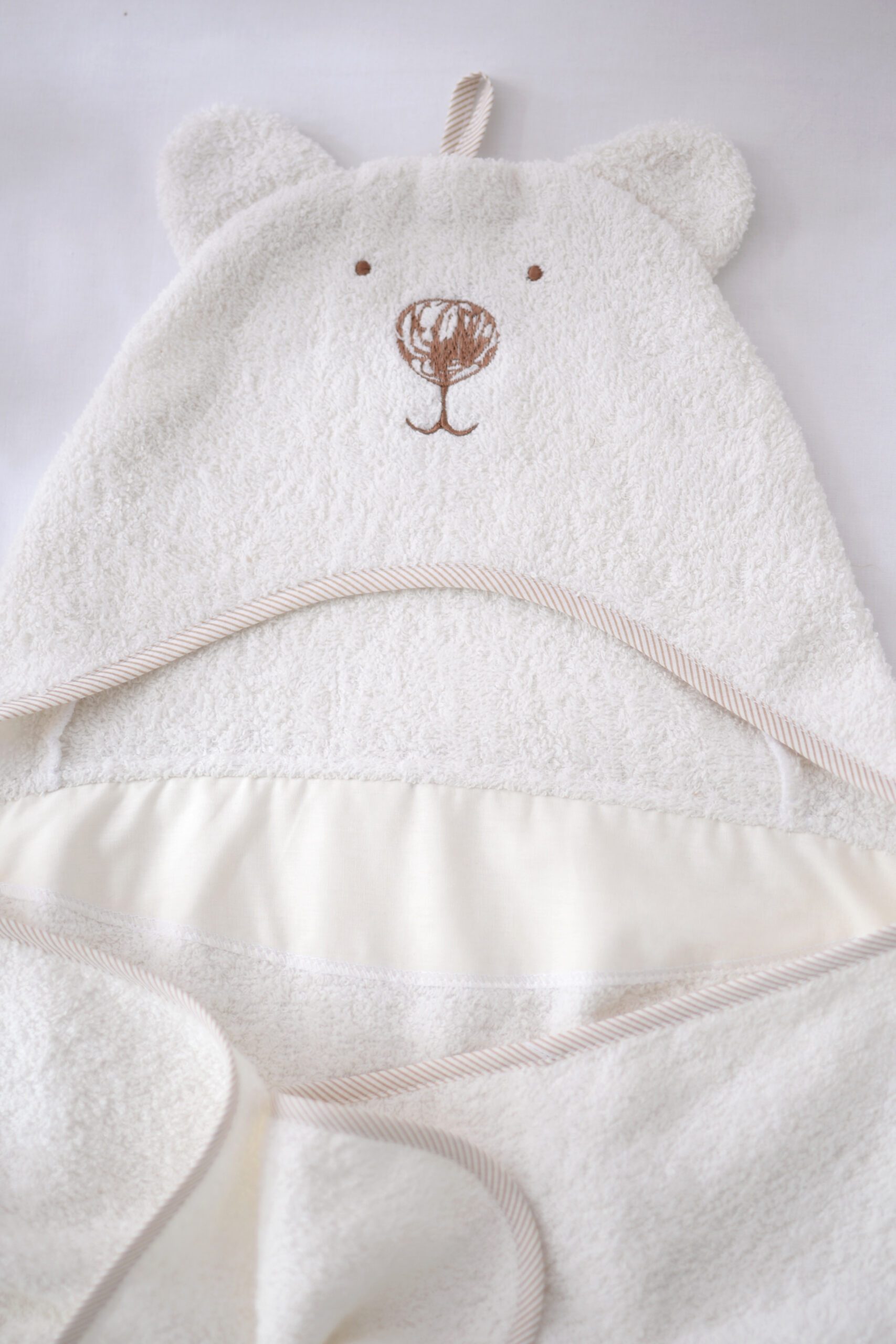 - Рушник для немовлят виготовляється з 100% бавовни. Матеріал – повністю безпечний для шкіри дитини. Будь-яке фарбування текстилю виконується виключно екологічними барвниками без токсичних смолистих домішок.